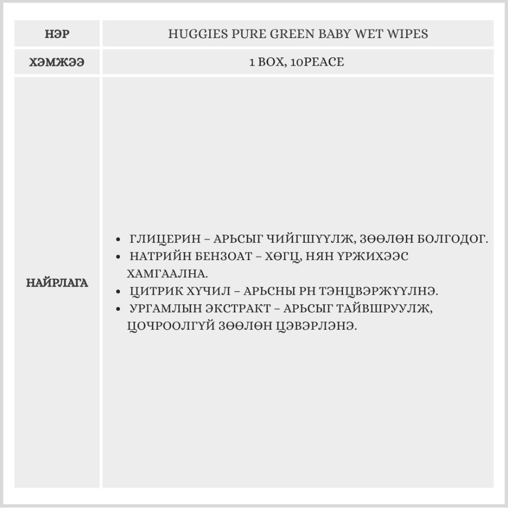 HUGGIES PURE GREEN BABY WET WIPES, 1 BOX, 10PEACE