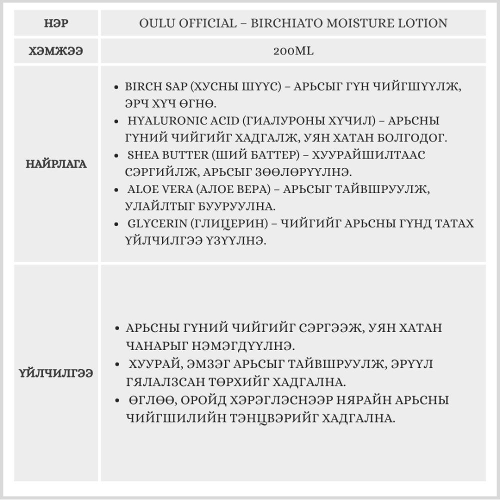 OULU OFFICIAL – BIRCHIATO MOISTURE LOTION, 200ML