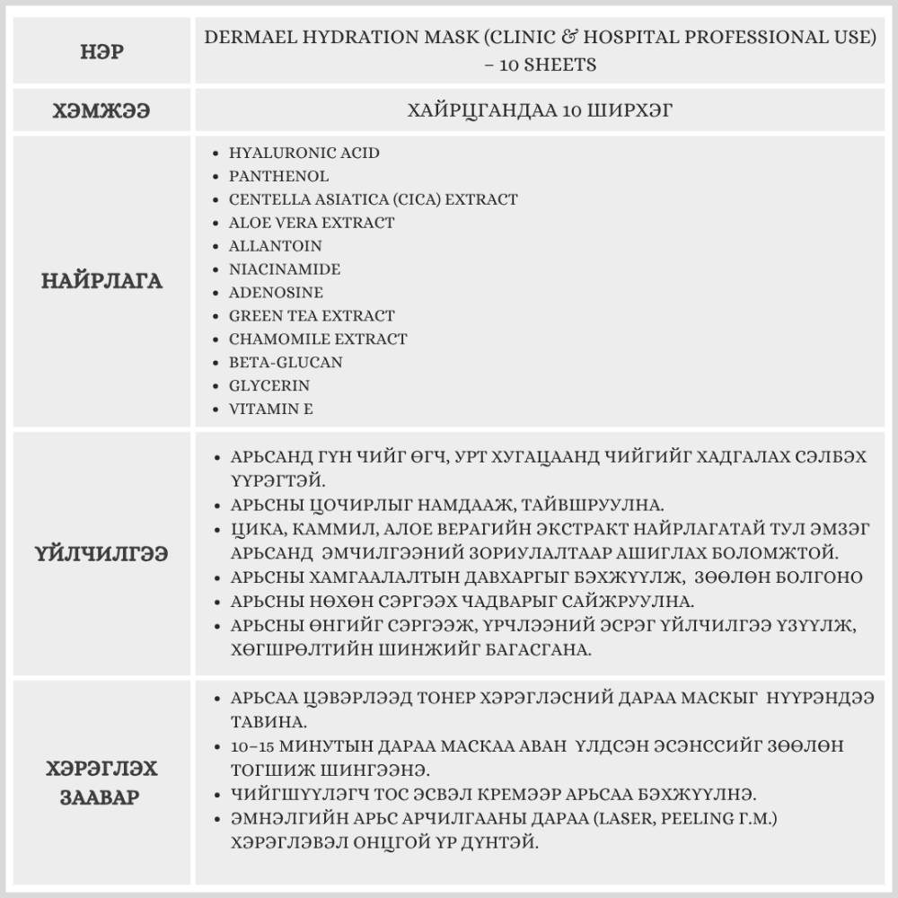 DERMAEL HYDRATION MASK (CLINIC & HOSPITAL PROFESSIONAL USE) – 10 SHEETS