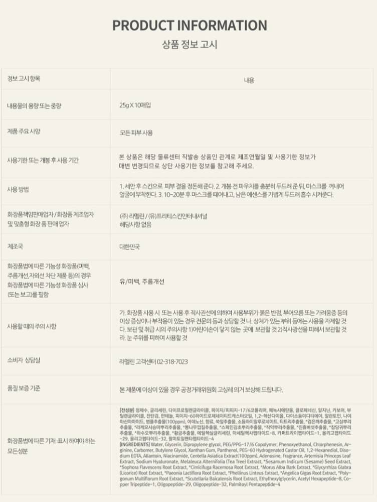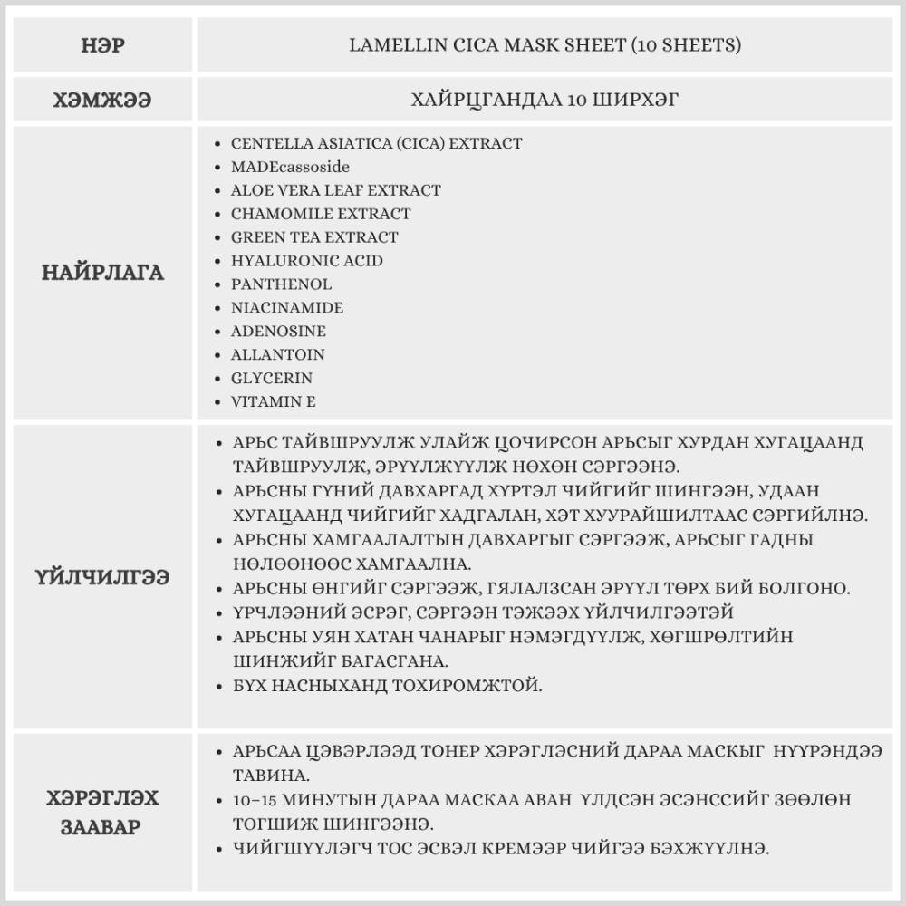 LAMELLIN CICA MASK SHEET (10 SHEETS)