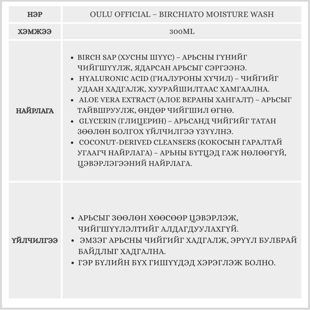 OULU OFFICIAL – BIRCHIATO MOISTURE WASH, 300ML