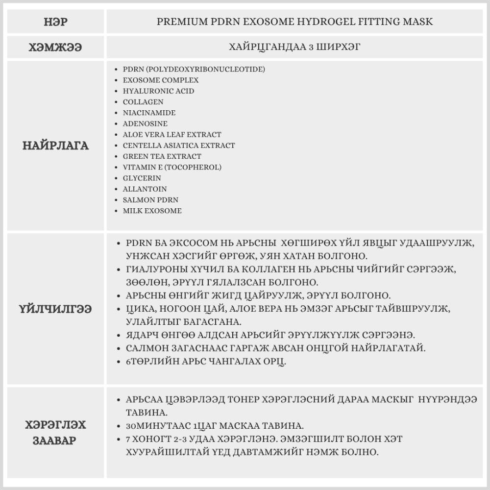 САЛМОН ЗАГАС, PDRN ОРЦ НАЙРЛАГАТАЙ ТУЛ АРЬСНЫ ХӨГШИРӨХ ҮЙЛ ЯВЦЫГ УДААШРУУЛЖ, УНЖСАН ХЭСГИЙГ ӨРГӨЖ, УЯН ХАТАН БОЛГОХ ҮЙЛЧИЛГЭЭТЭЙ ГҮН ЧИЙГШҮҮЛЭХ МАСК.