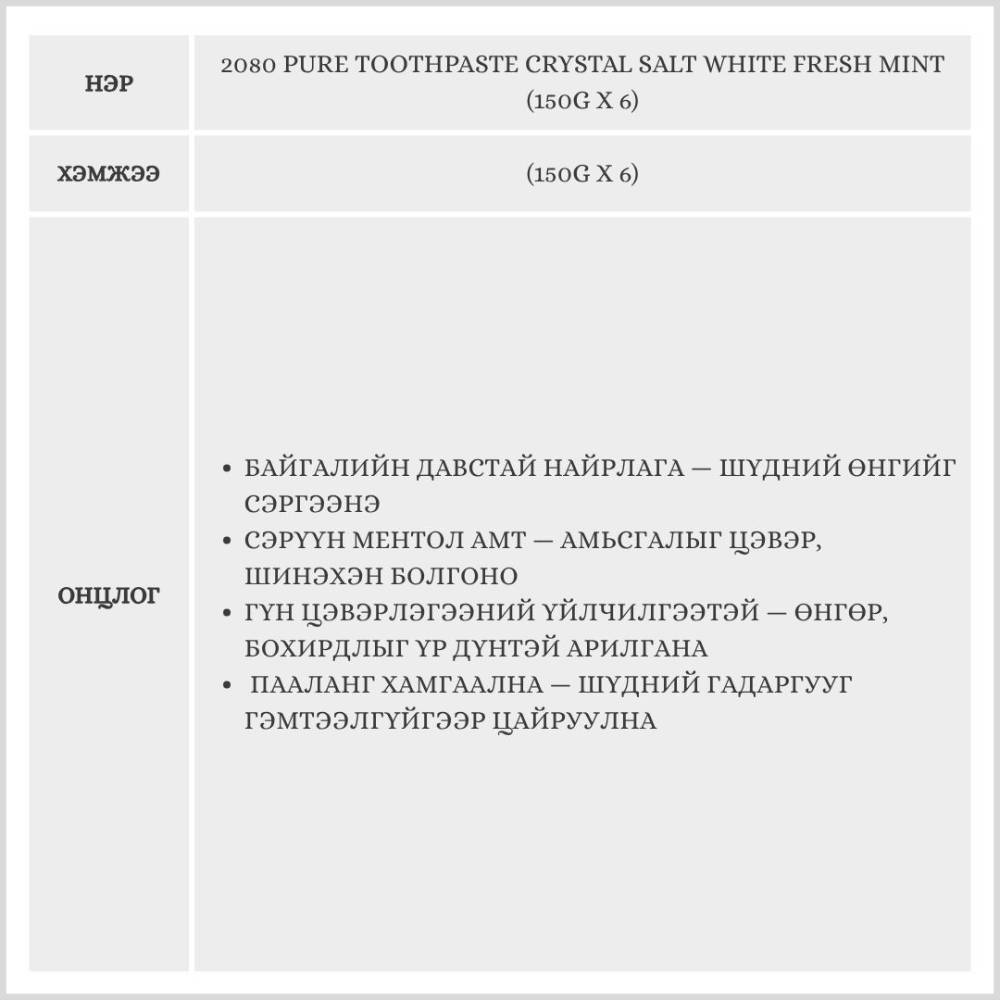 2080 Pure Toothpaste Crystal Salt White Fresh Mint (150g х 6)
