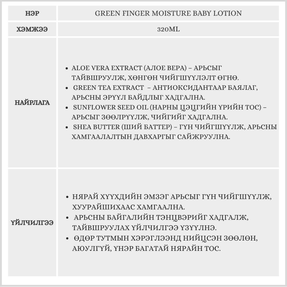GREEN FINGER MOISTURE BABY LOTION, 320ML