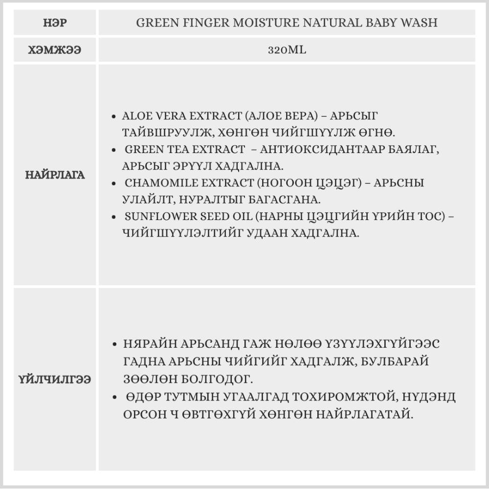 GREEN FINGER MOISTURE NATURAL BABY WASH, 320ML