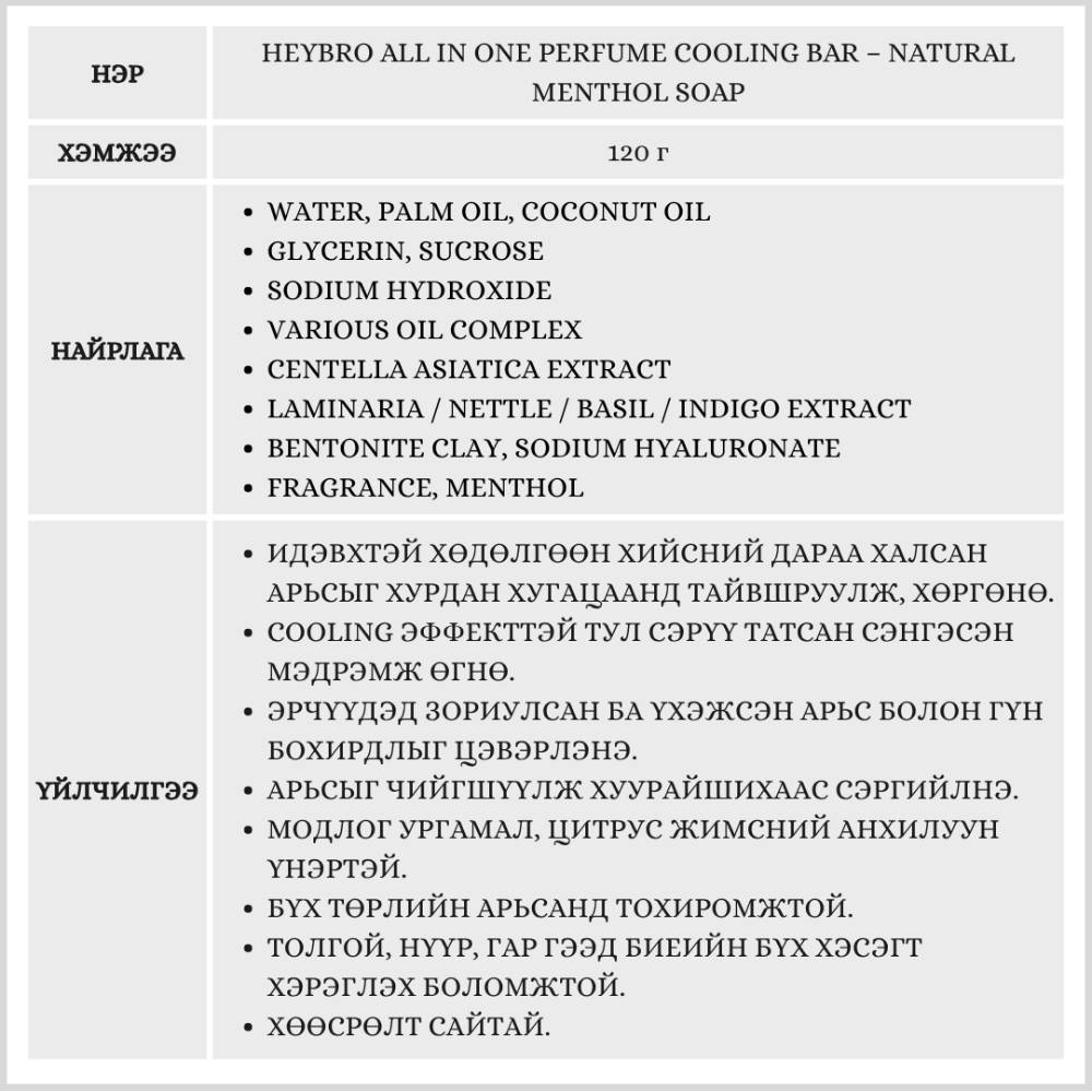 HEYBRO All in One Perfume Cooling Bar – Natural Menthol Soap, 120g