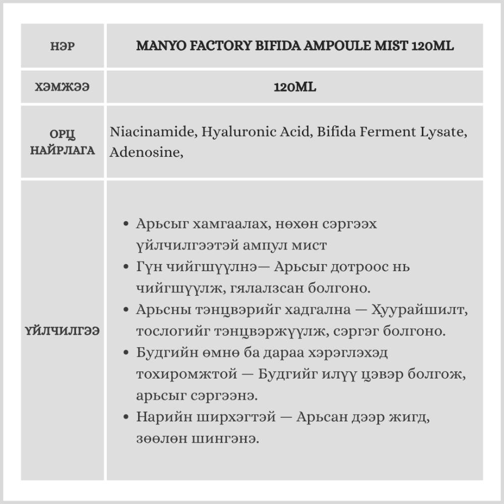 Manyo Factory Bifida Ampoule Mist 120ml