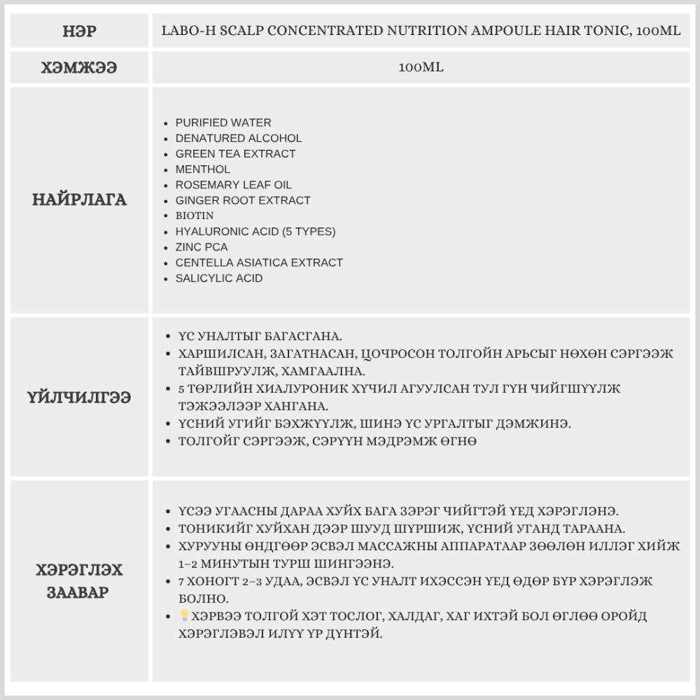 LABO-H SCALP CONCENTRATED NUTRITION AMPOULE HAIR TONIC