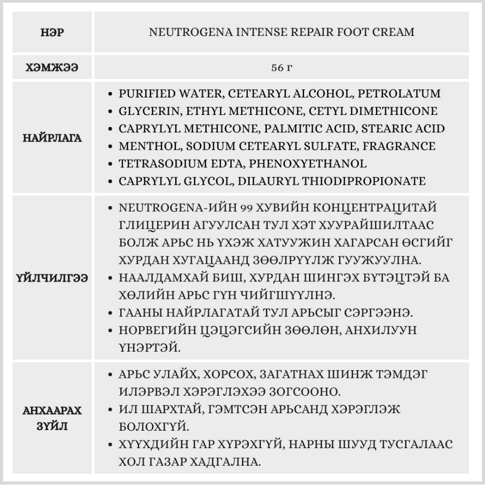 Хэт хуурайшилттай, хатуу арьсанд зориулсан хүчтэй үйлчилгээтэй чийгшүүлэгч хөлийн тос. Гаа агуулсан тул арьсыг сэргээж, сэнгэсэн мэдрэмж өгөх ба анхилуун үнэртэй.
