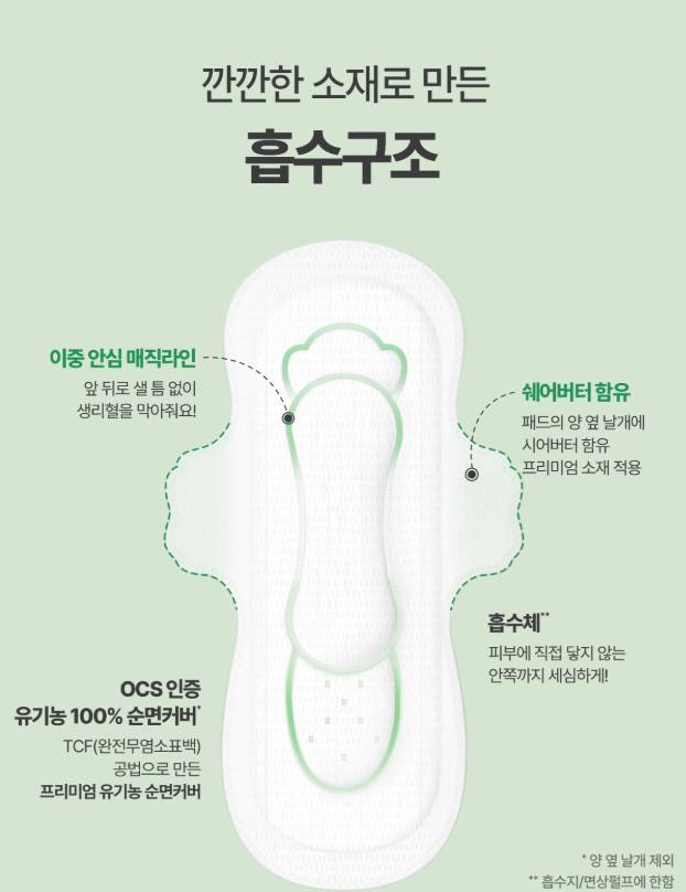 Уг хэрэглэл нь 100% органик хөвөн даавуун бөгөөд ард урдаасаа урсахгүй байхаар хийгдсэн. Эмзэг мэдрэмтгий арьсанд ч тохиромжтой ба урсаж нэвтрэхгүй гэдгээрээ давуу талтай