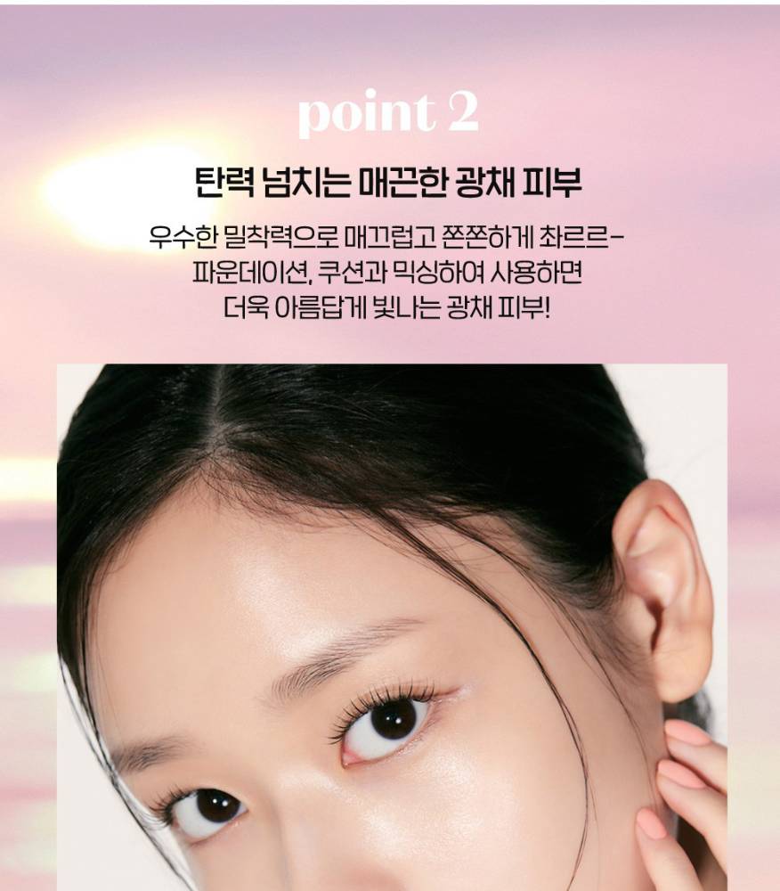 Арьс гэрэлтэлтэй буюу water-glow эффекттэй болгох зориулалттай makeup base буюу праймер хэлбэрийн бүтээгдэхүүн. Арьсыг “glass skin” буюу тунгалаг, гэрэлтсэн гадаргуутай болгодог. Будалтаа түрхэхийн өмнө суурь болгож хэрэглэж, эсвэл суурь будгатай хольж хэрэглэх боломжтой.