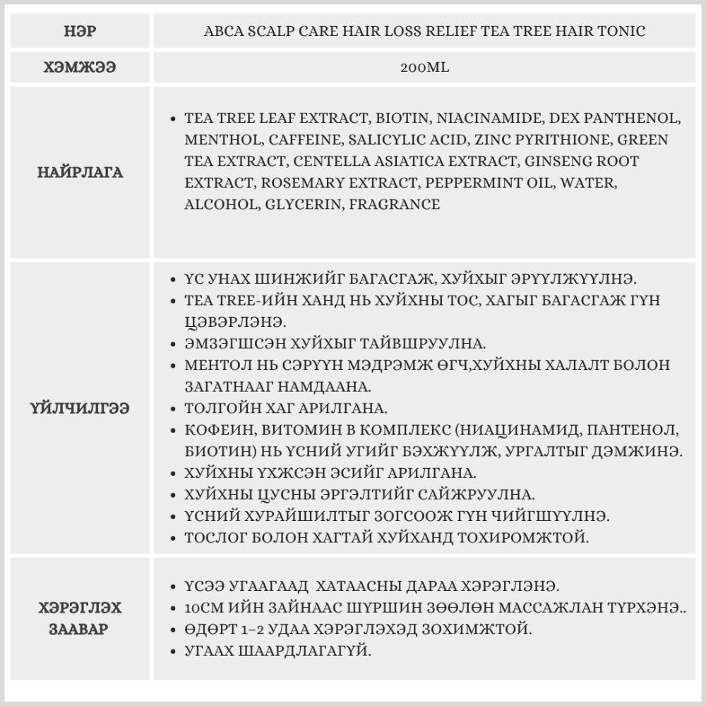 ABCA SCALP CARE HAIR LOSS RELIEF TEA TREE HAIR TONIC