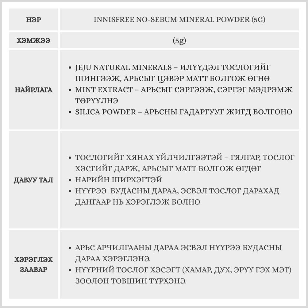 Innisfree No-Sebum Mineral Powder 5g(Эрэгтэй нүүр будалт)