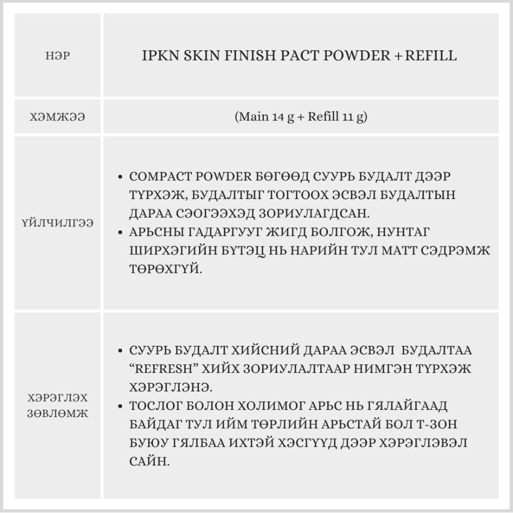 IPKN Skin Finish Pact Powder + Refill (Main 14 g + Refill 11 g)