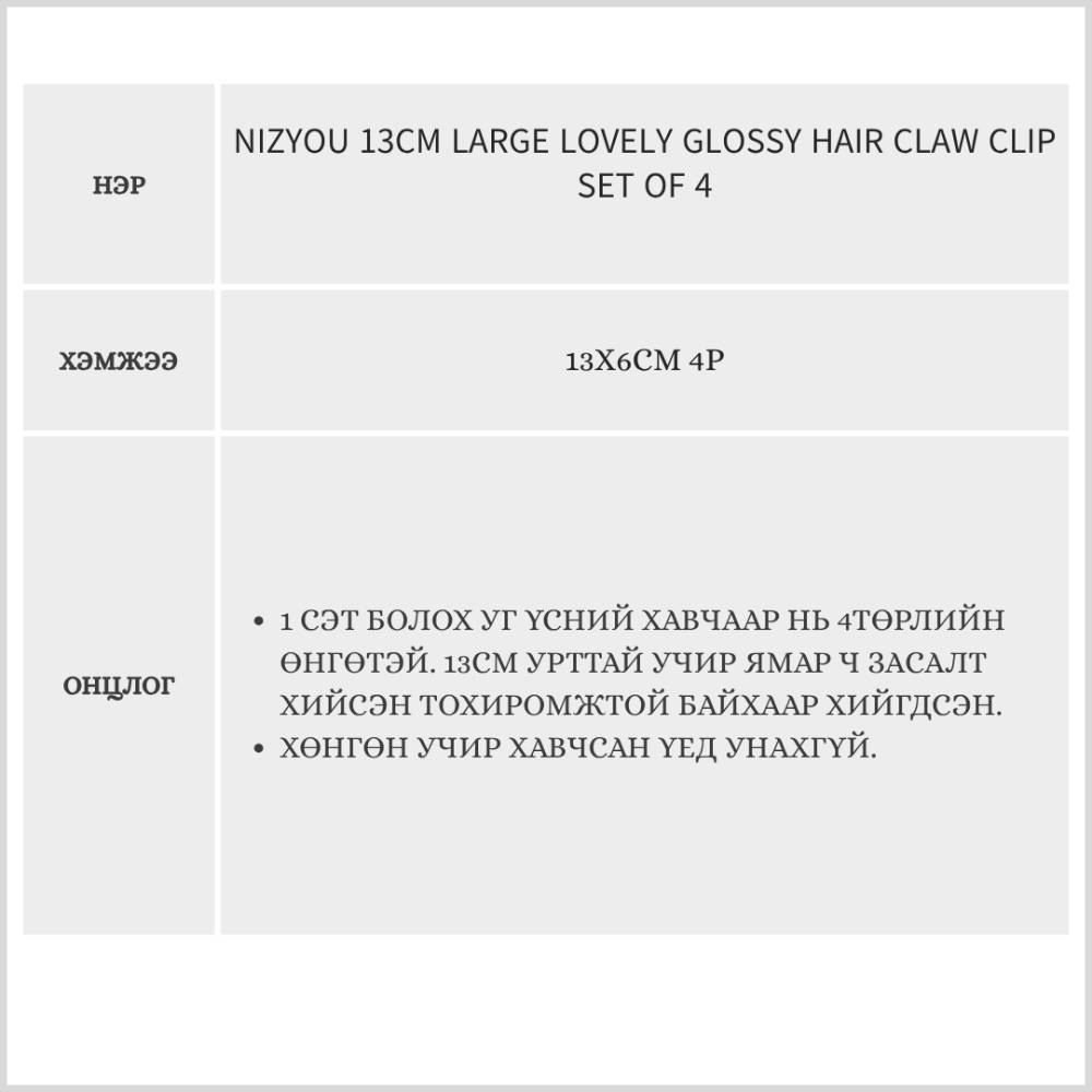 Nizyou 13cm Large Lovely Glossy Hair Claw Clip Set of 4
