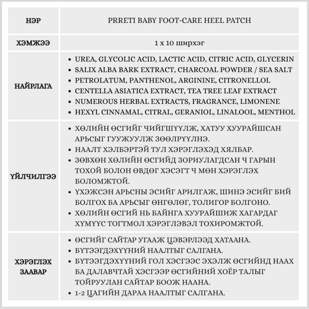 Хуурайшиж хагарсан өсгийний арьсыг эдгээгч наалт. Үхэжсэн арьсны эсийг арилгаж, шинэ эс бий болгох замаар өсгийг зөөлөн толигор болгоно. Зөвхөн өсгий гэлтгүй хуурайшиж хагарсан тохой, өвдгөнд ч мөн хэрэглэх боломжтой.
