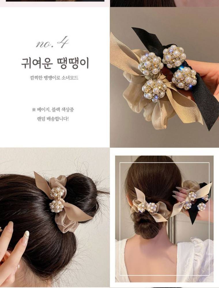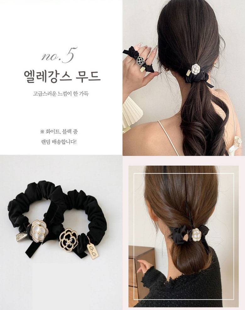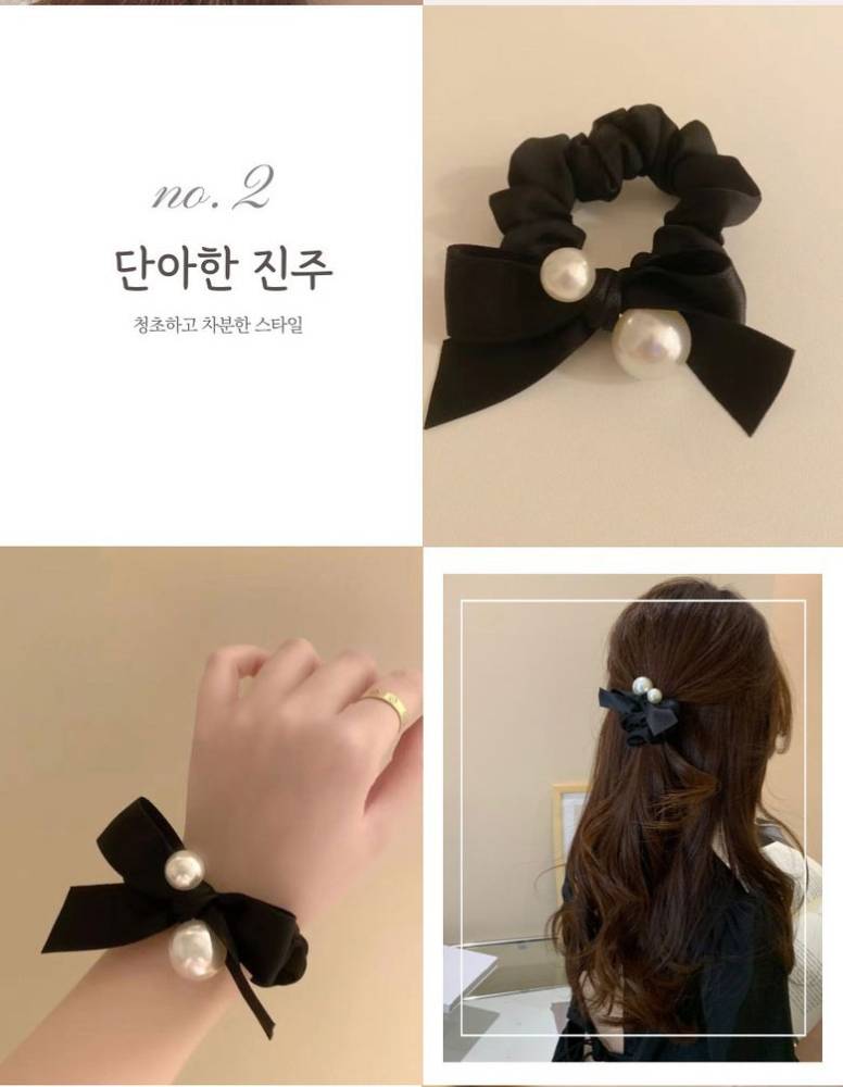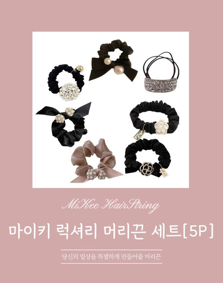 MyKey Luxury Pearl Scrunchie Hair Band Set (5 Pieces)