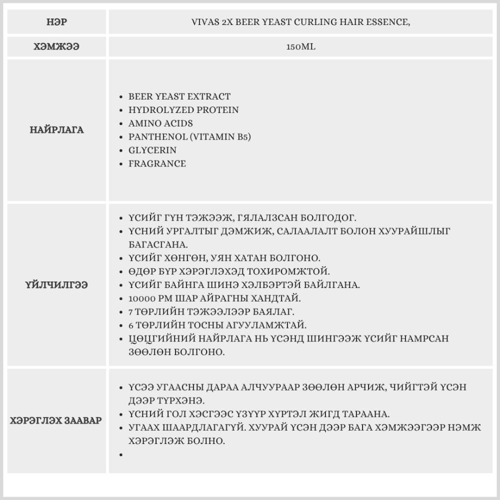 VIVAS 2X BEER YEAST CURLING HAIR ESSENCE