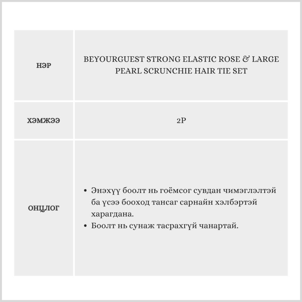 Энэхүү боолт нь гоёмсог сувдан чимэглэлтэй ба үсээ бооход тансаг сарнайн хэлбэртэй харагдана. Боолт нь сунаж тасрахгүй чанартай.