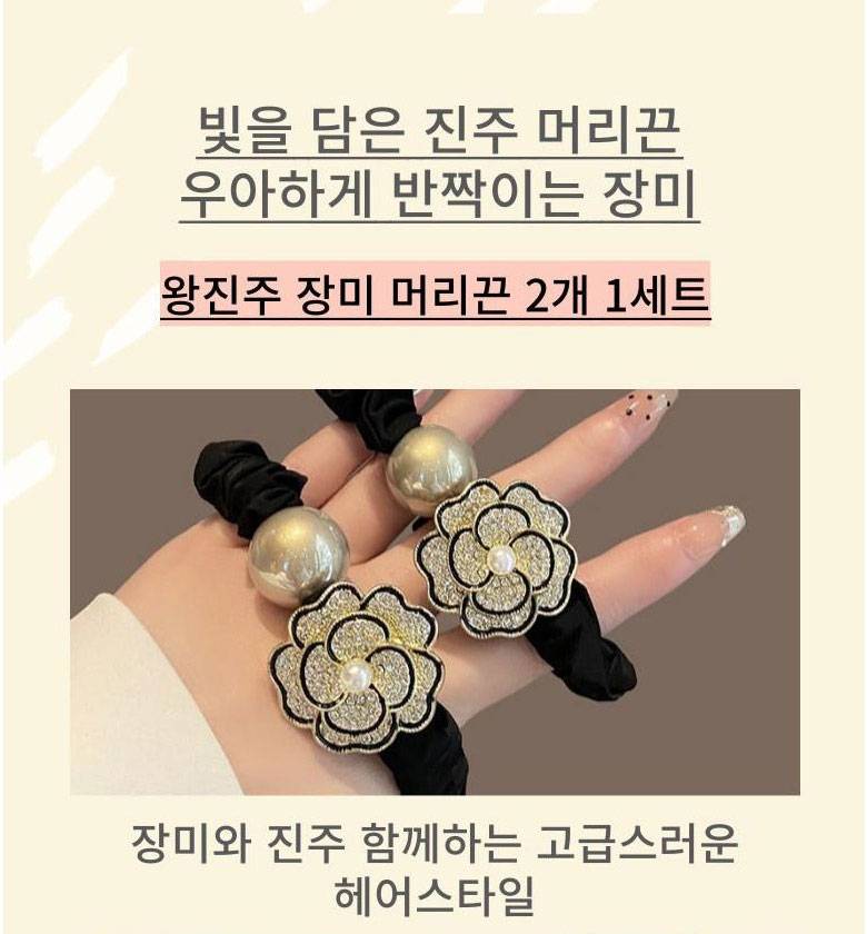 BeYourGuest Strong Elastic Rose & Large Pearl Scrunchie Hair Tie Set
