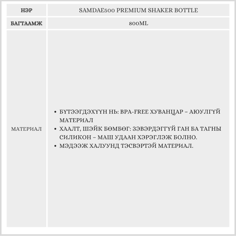 SAMDAE500 PREMIUM SHAKER BOTTLE, 800ML