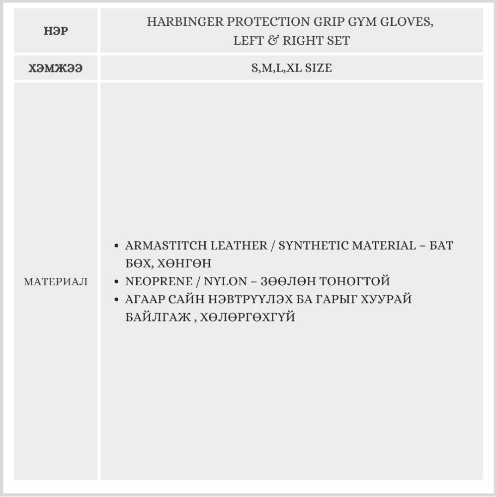 HARBINGER PROTECTION GRIP GYM GLOVES, LEFT & RIGHT SET