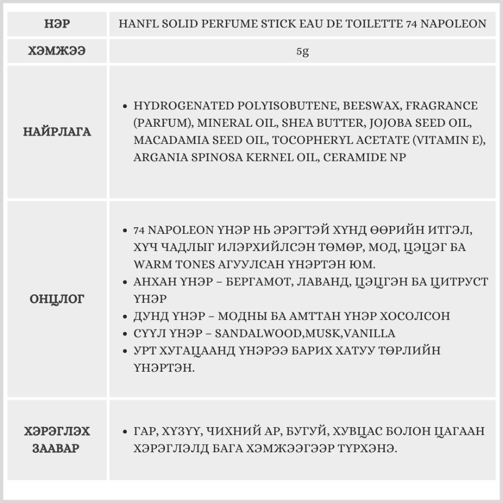 HANFL SOLID PERFUME STICK EAU DE TOILETTE 74 NAPOLEON