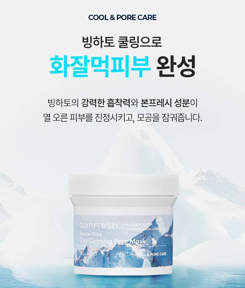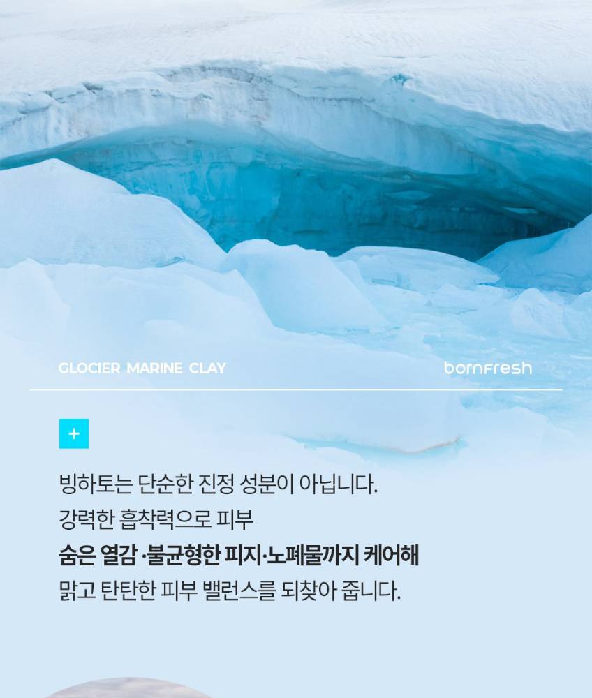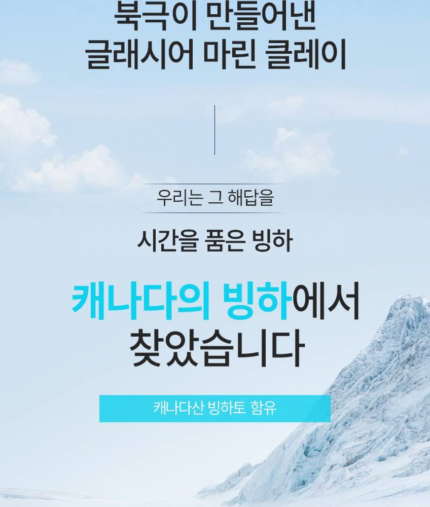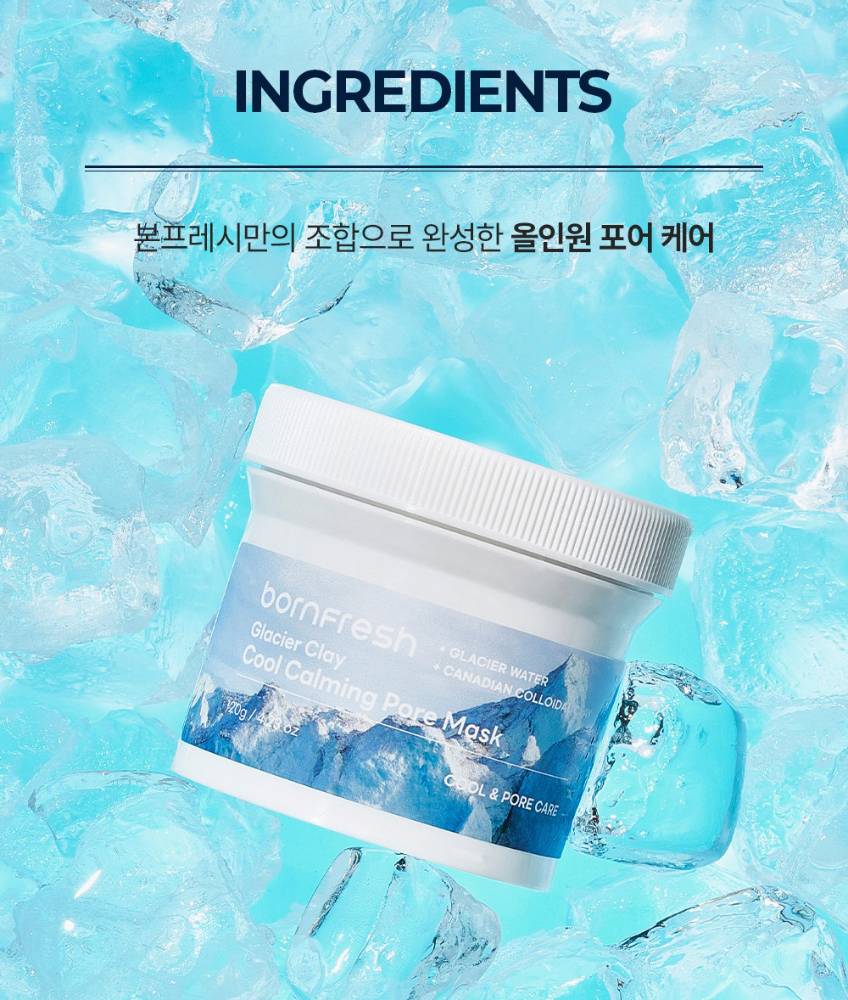 Glacier Clay-ыг ашигласан, арьсыг хөргөж, тайвшруулах үйлчилгээтэй нүх сүв цэвэрлэгч маск юм. Энэхүү маск нь арьсыг цэвэрлэх, чангалах зориулалттай бөгөөд арьсанд түрхэх үед сэнгэнэсэн мэдрэмж төрүүлснээр арьсыг тайвшруулна.