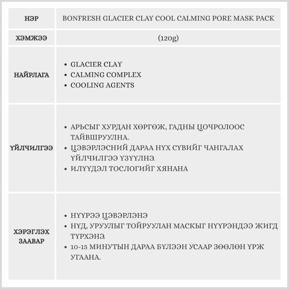 Bonfresh Glacier Clay Cool Calming Pore Mask Pack /Угаадаг Маск/