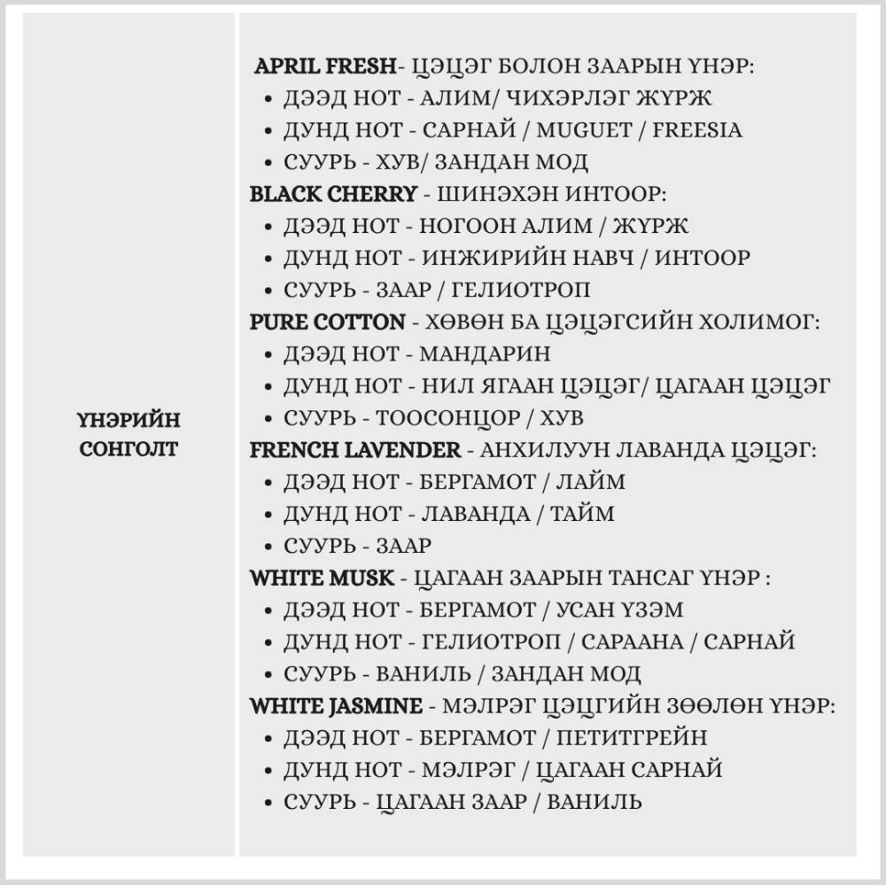 8 төрлийн үнэрийн сонголттой өрөө, тасалгааны үнэртүүлэгч. Үнэрийг удаан барих ба биед хоргүй.