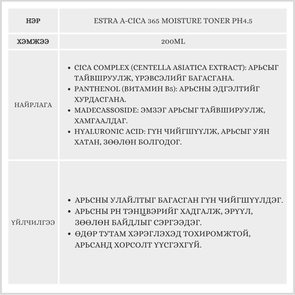 ESTRA A-CICA 365 MOISTURE TONER pH4.5, 200ML