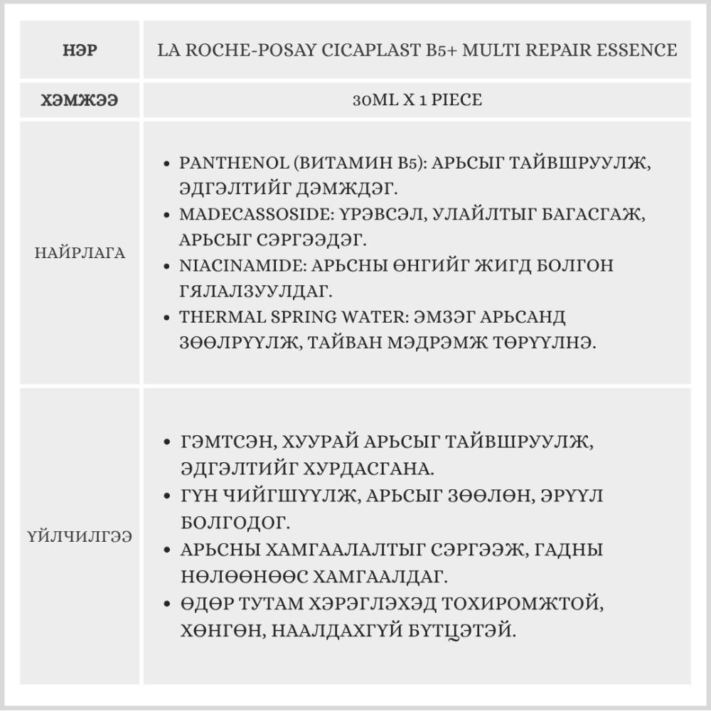 ЭМЗЭГ, ГЭМТСЭН АРЬСЫГ ТАЙВШРУУЛЖ, ЭДГЭЛТИЙГ ХУРДАСГАН ГҮН ЧИЙГШҮҮЛЖ АРЬСНЫ ХАМГААЛАЛТЫГ СЭРГЭЭДЭГ ХӨНГӨН БҮТЭЦТЭЙ MULTI-RAPAIR ESSENCE.