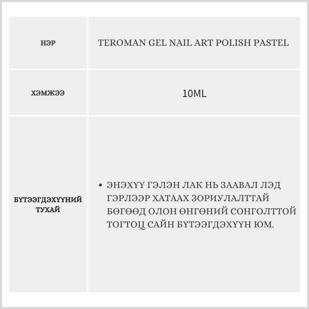 Энэхүү гэлэн лак нь заавал лэд гэрлээр хатаах зориулалттай бөгөөд олон өнгөний сонголттой тогтоц сайн бүтээгдэхүүн юм.