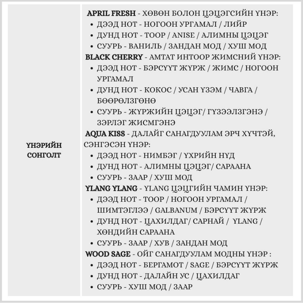 Өвөрмөц загварын лонхтой өрөө тасалгааны үнэртүүлэгч. 8 төрлийн үнэрийн сонголттой. 510 мл хэмжээтэй 2 ширхэг ба бэлгэнд өгөхөд тохиромжтой баглаа боодолтой.