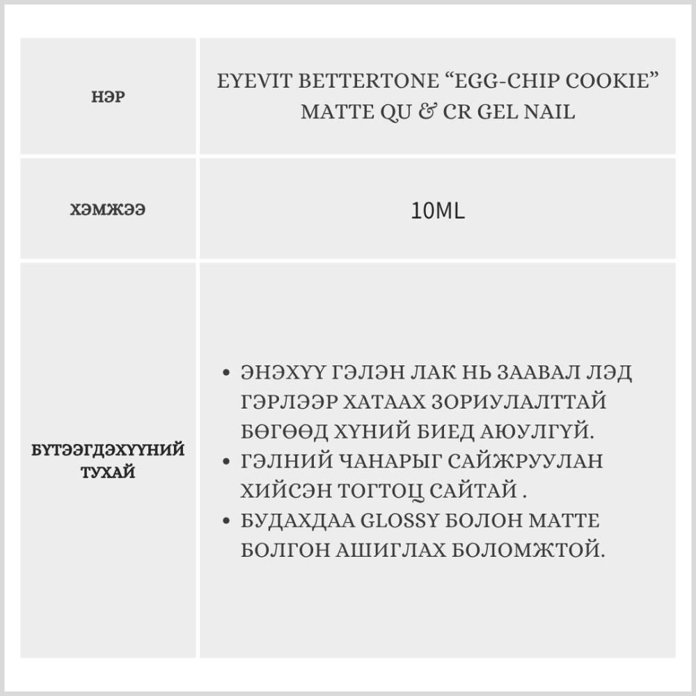 EYEViT BetterTone “Egg-Chip Cookie” Matte Qu & Cr Gel Nail