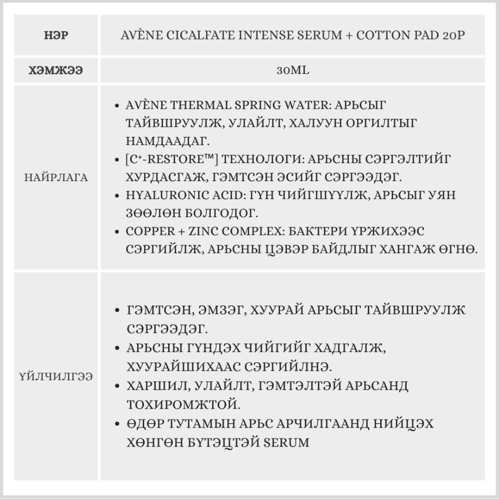 AVÈNE CICALFATE INTENSE SERUM,30ML + COTTON PAD 20P