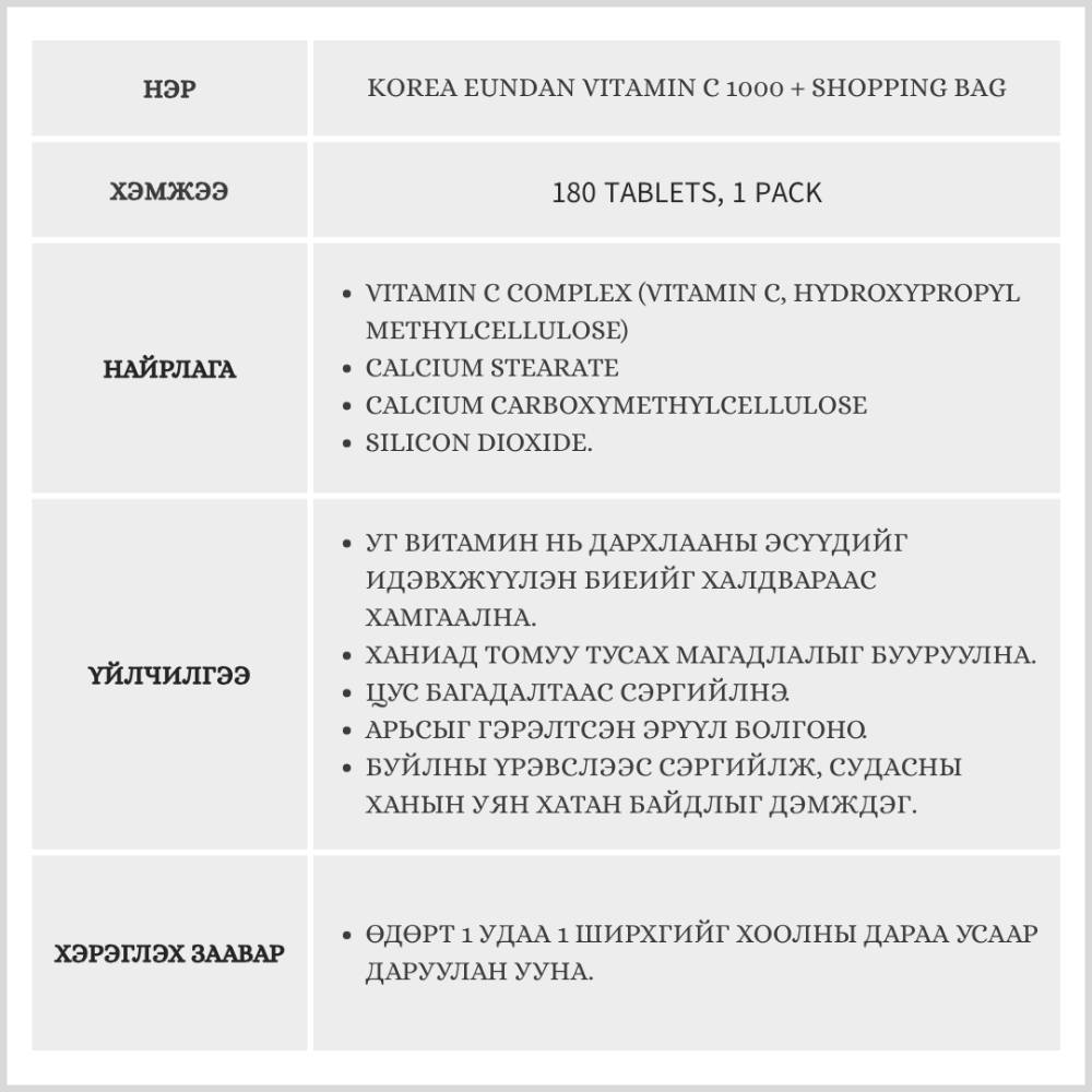 Korea Eundan Vitamin C 1000 + Shopping Bag /Витамин C/