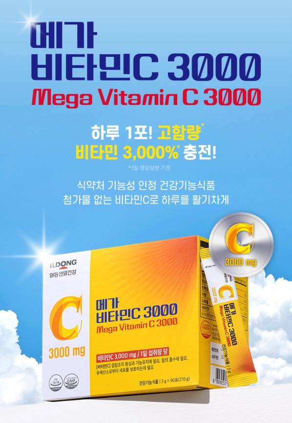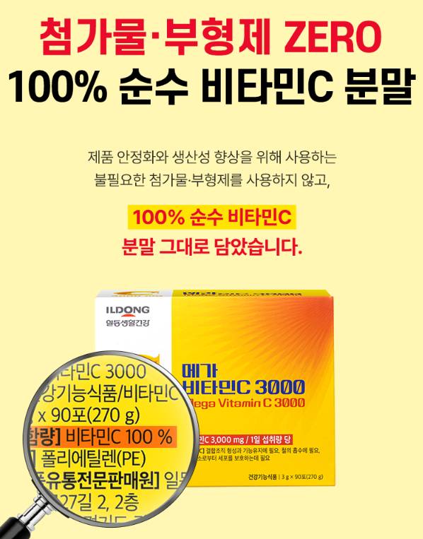 ILDONG Mega Vitamin C 3000mg High-Potency Pure Vitamin C 100% (3-Month Supply) /Витамин C/