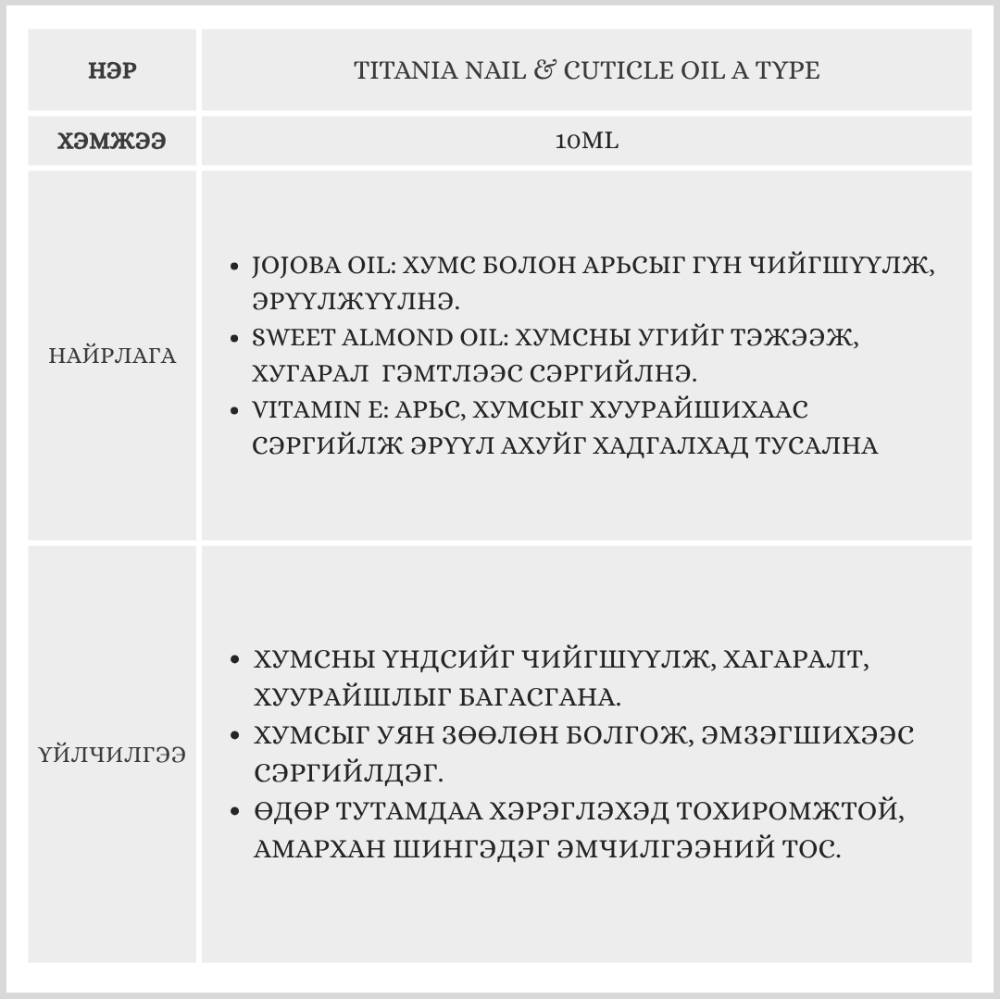 TITANIA NAIL & CUTICLE OIL A TYPE, 10ML, 1 PIECE