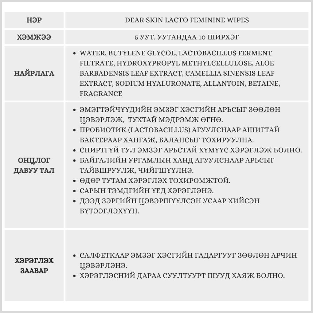 ПРОБИОТИК АГУУЛСАН АРЬСЫГ ТАЙВШРУУЛЖ, ЧИЙГШҮҮЛЭХҮЙЛЧИЛГЭЭТЭЙ ЭМЭГТЭЙЧҮҮДИЙН САЛФЕТКА.