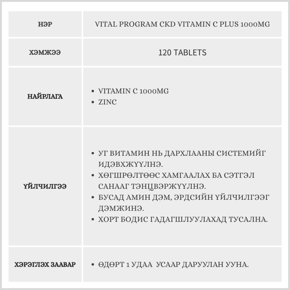 Vital Program CKD Vitamin C Plus 1000mg, 120 Tablets /Витамин C/