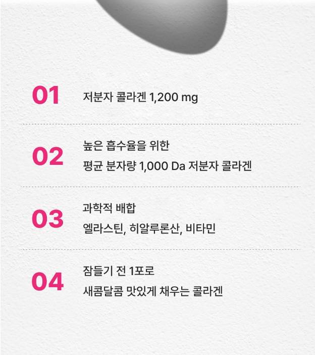 Энэхүү коллаген нь хаана ч хэзээ ч хэрэглэж болохоор авсаархан савалгаатай ба 24 цагийн турш арьсанд дээд зэргээр шингэнэ. Арьсанд хэрэгтэй 3 төрлийн орцыг агуулсан.