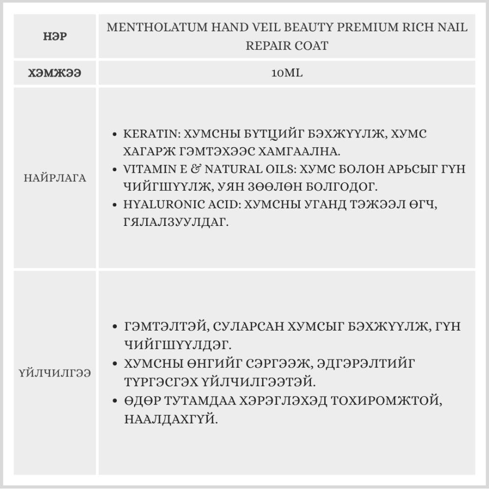MENTHOLATUM HAND VEIL BEAUTY PREMIUM RICH NAIL REPAIR COAT, 1 PIECE