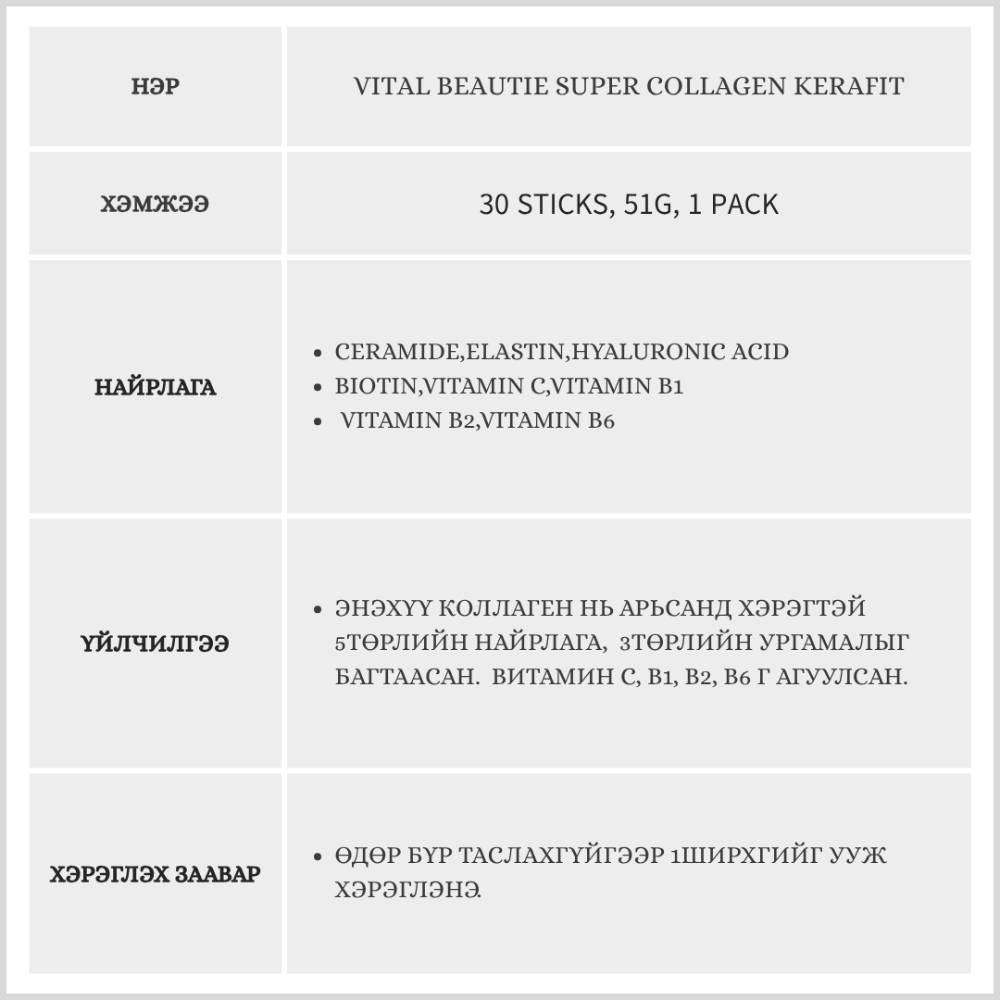 Vital Beautie Super Collagen Kerafit, 30 Sticks, 51g, 1 Pack