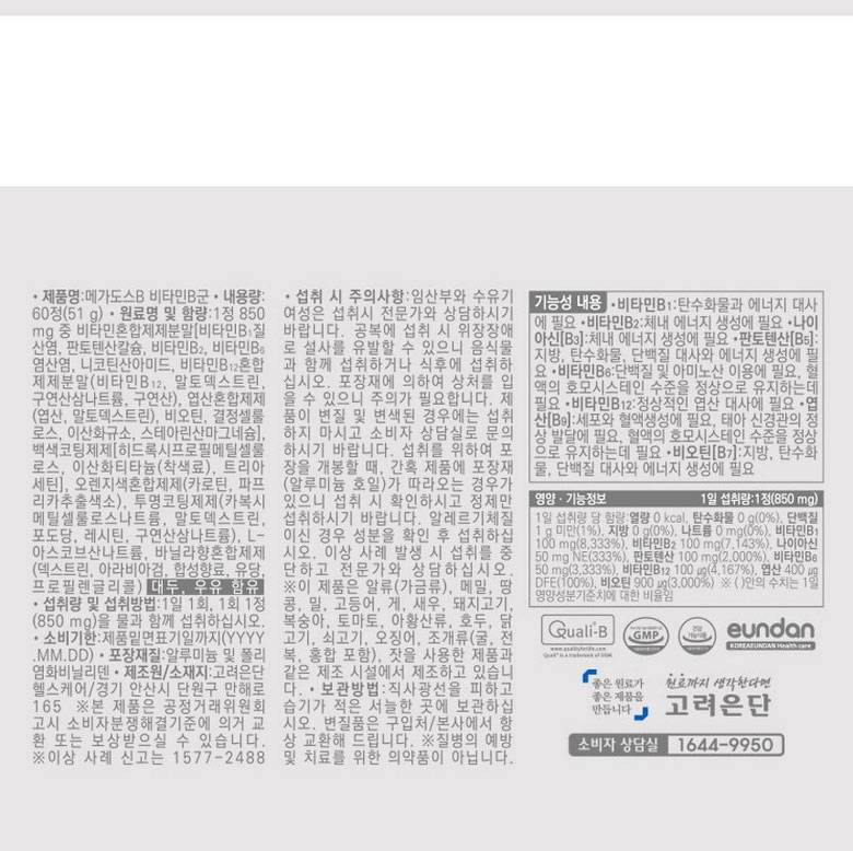 Korea Eundan Megadose B Vitamin Complex (60 tablets, 1 pack)
