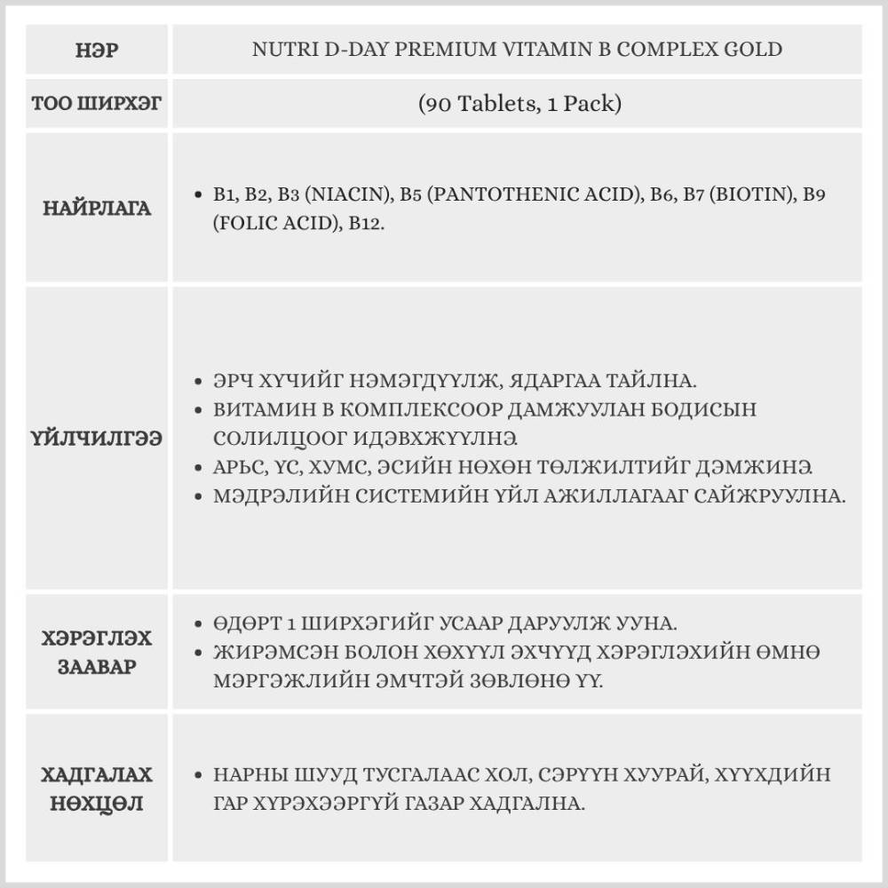 Nutri D-Day Premium Vitamin B Complex Gold (90 Tablets, 1 Pack)