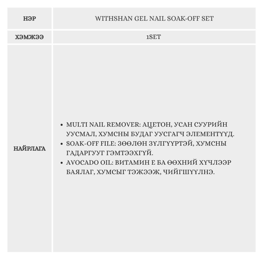 WITHSHAN GEL NAIL SOAK-OFF SET, 1SET