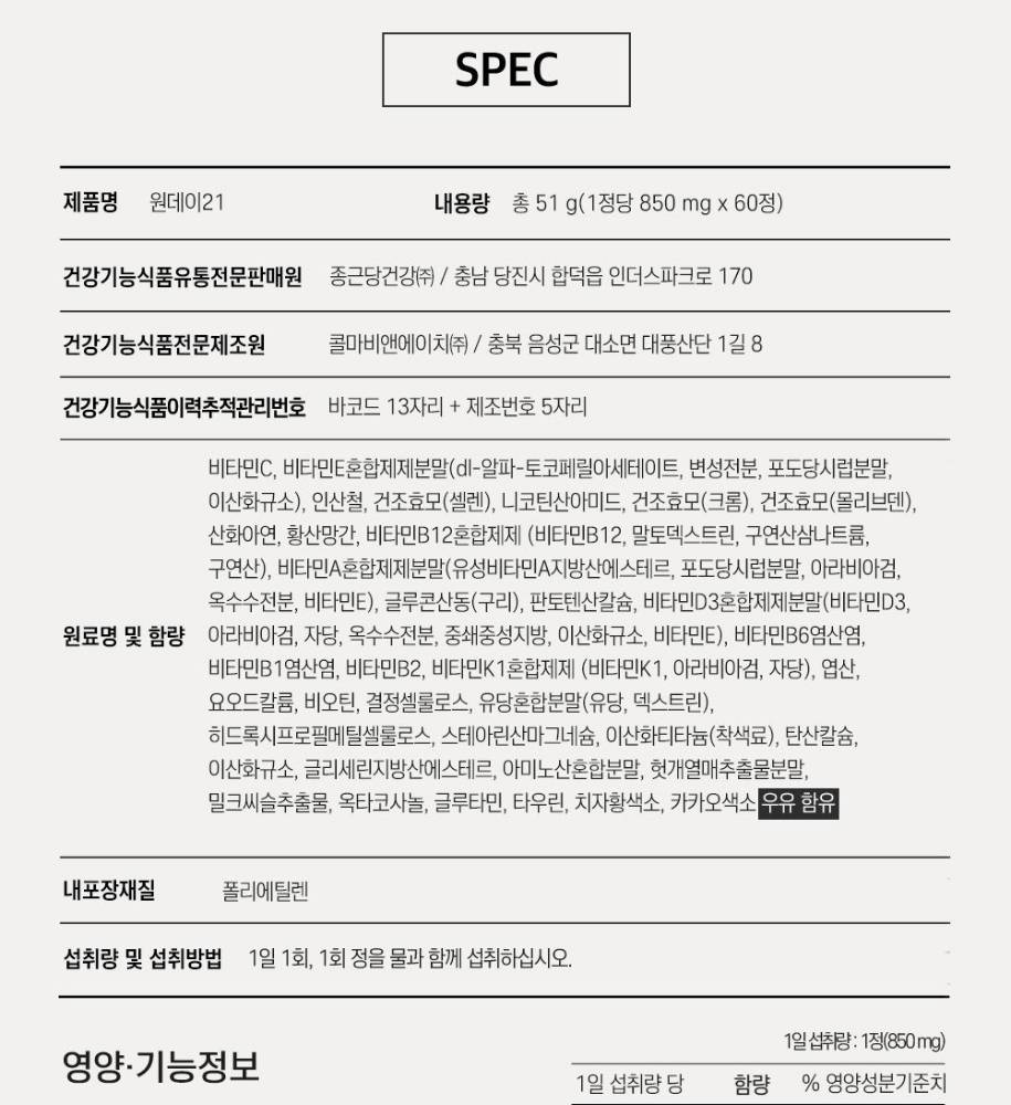 Chongkundang One Day 21 Multivitamin & Mineral (60 Tablets, 2 Packs)