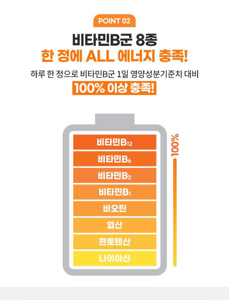 В витамины идэвхтэй болон үндсэн төрлүүдийг агуулсан, бодисын солилцоо болон эрч хүчийг дэмжинэ. Бүтээгдэхүүн нь хоол тэжээлийг эрч хүч,энерги болгон хувиргах үйл явцыг дэмжиж, ядаргаа, ядарч сульдах байдлыг бууруулахад туслана.