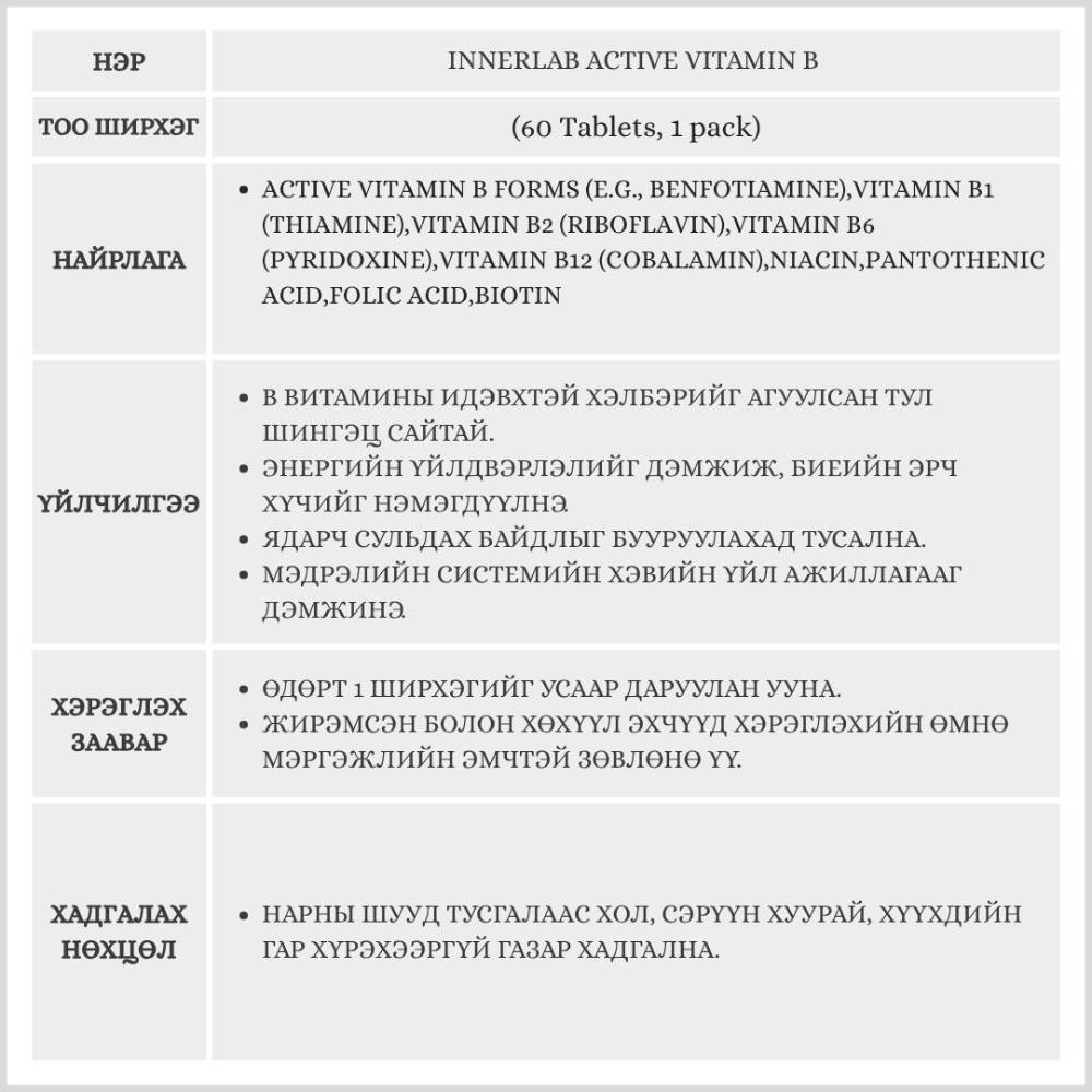 InnerLab Active Vitamin B (60 Tablets, 1 pack)